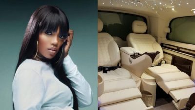 She shares the photo of his customized car on her twitter page and captioned it: “And He keeps blessing me #NewWhipAlert”.
